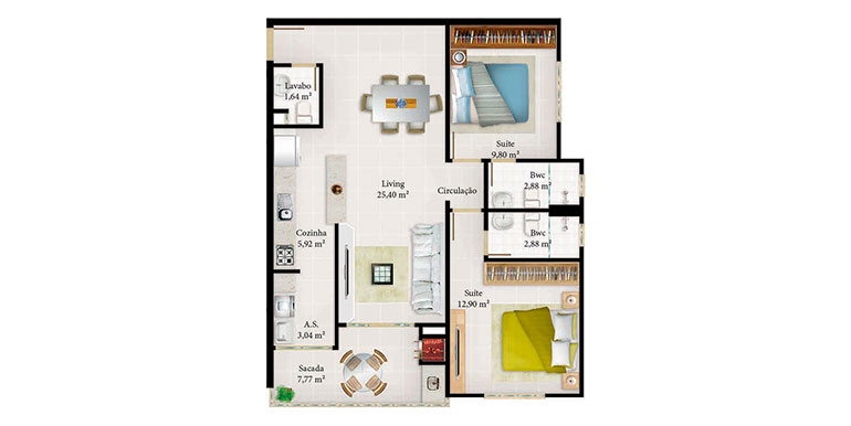 - Apartamentos Com 2 Suítes ou 1 Suíte + 1 Dormitório