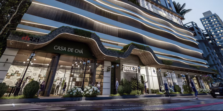 Apartamentos no Edifício Holmes em Balneário Camboriú. Imóvel na planta, com 3 suítes, lavabo, 2 vagas de garagem e ótima área de lazer, incluindo no rooftop, localizado na Rua 200 – Centro, próximo do Teatro Municipal.