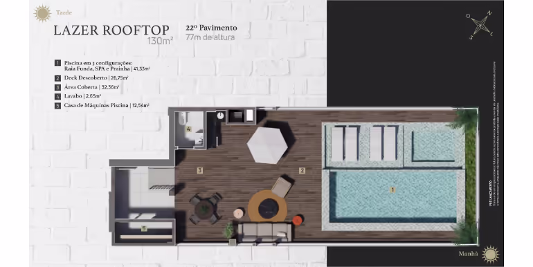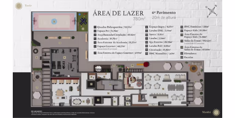 - Área de Lazer com Mais de 900 m² em 2 Pavimentos, no 6º e no Rooftop