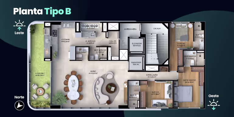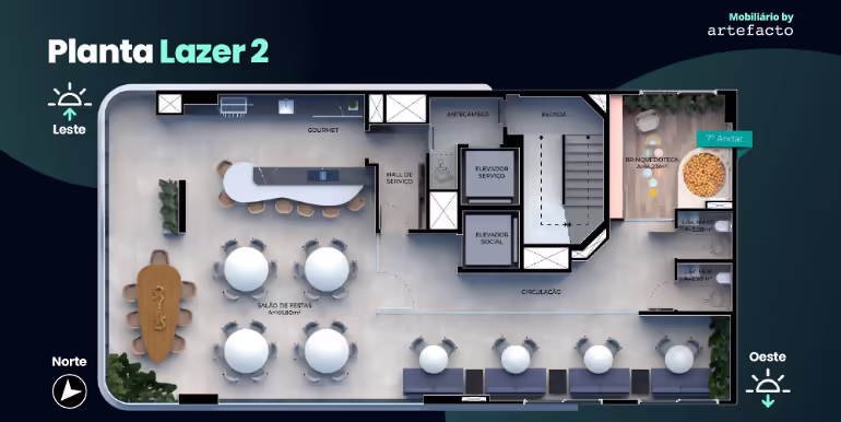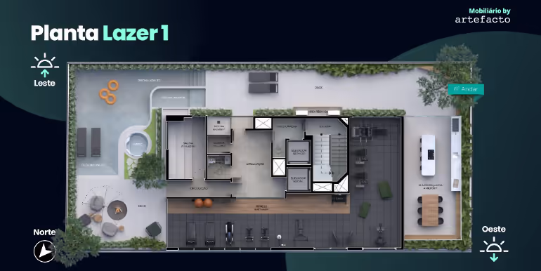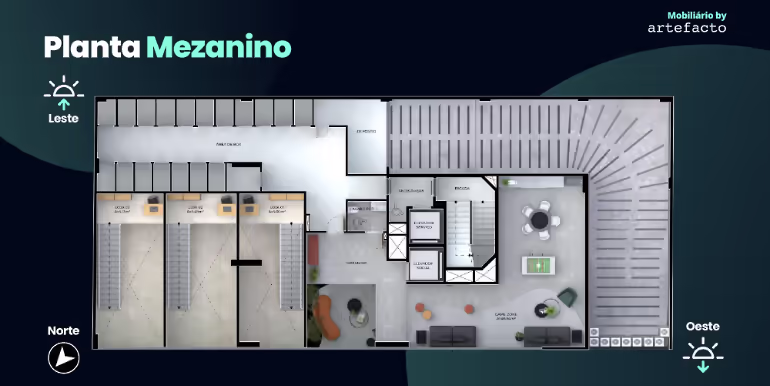 - 3 Pavimentos de Área de Lazer (Mezanino, 6º e 7º)