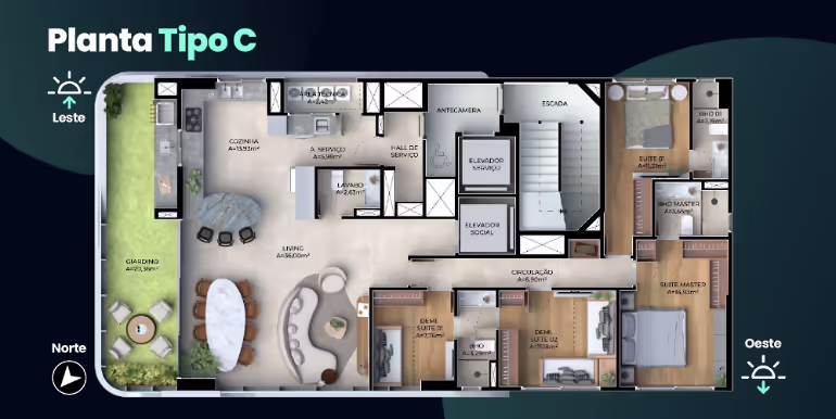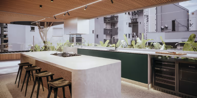 Apartamentos no Edifício Quantum em Balneário Camboriú. Imóvel na planta, espaçoso, com a exclusividade de 1 apartamento por andar, 3 suítes ou 2 suítes + 2 demi-suítes, lavabo, sacada com churrasqueira a carvão e ótima área de lazer by Artefacto, localizado na Rua 2850 – Centro.