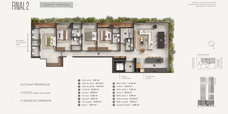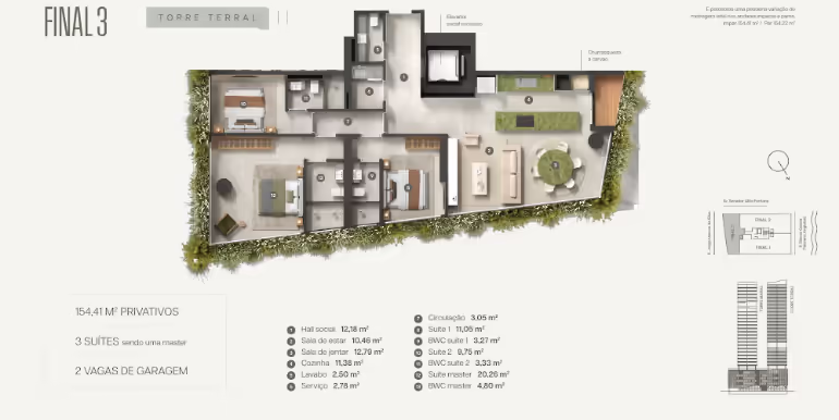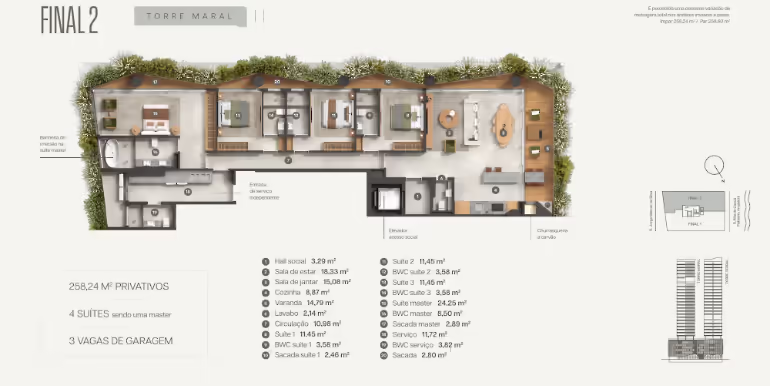 - Tipo: 3 ou 4 Suítes / 154 a 258 m²