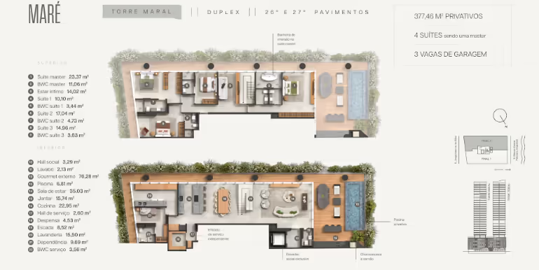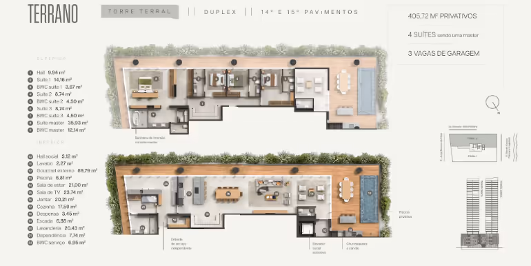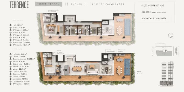 - Duplex: 4 Suítes / Piscina Privativa / 370 a 411 m²