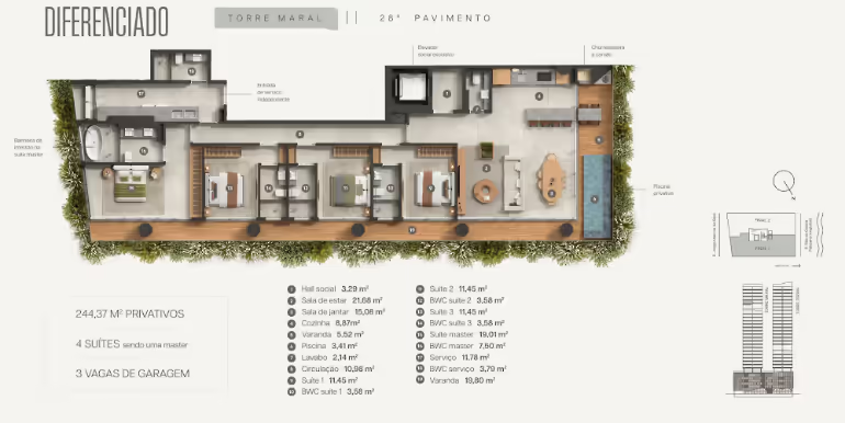 - Diferenciado: 4 Suítes / Piscina Privativa / 244 m²