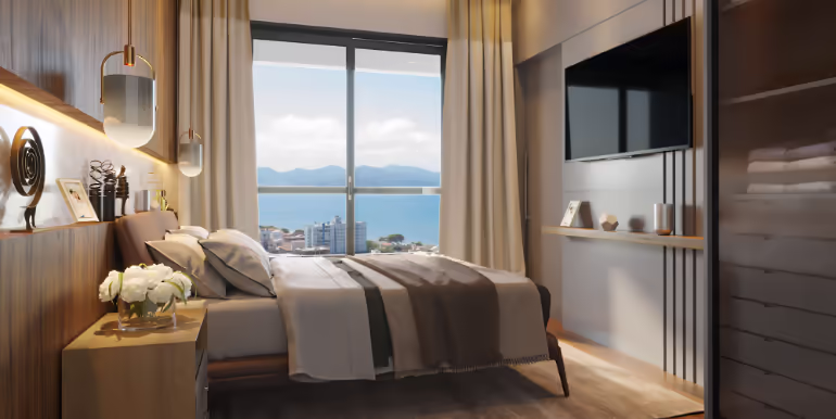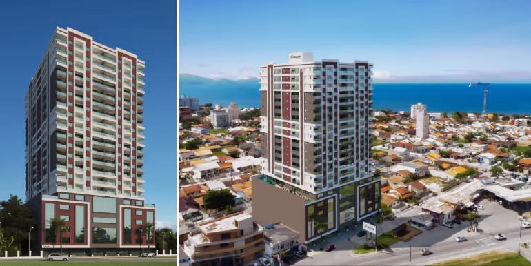 Apartamentos no Edifício Porto do Sol em Porto Belo. Imóvel na planta, com 2 suítes, lavabo, sacada com churrasqueira a carvão, 2 vagas de garagem e área de lazer home club com 1.300 m², localizado a 500 metros da praia.
