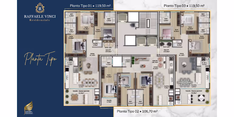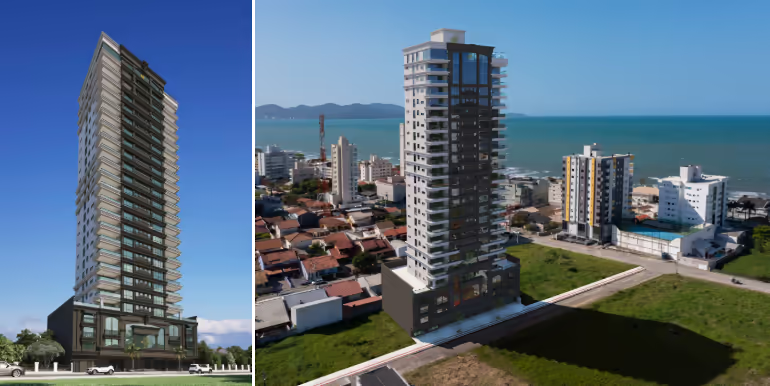 Apartamentos no Edifício Raffaele Vinci em Balneário Perequê, Porto Belo. Imóvel na planta, com 3 suítes, lavabo, churrasqueira a carvão, 2 vagas de garagem e área de lazer no rooftop, localizado a apenas 200 metros da praia.