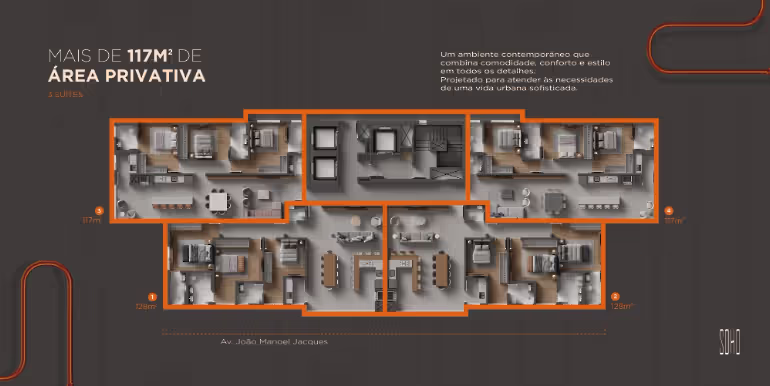 Apartamentos no Edifício Soho em Balneário Perequê, Porto Belo. Imóvel na planta, com 3 suítes, lavabo, living integrado com churrasqueira a carvão, 2 vagas de garagem, lazer home club com mais de 1.000 m² e localização espetacular, numa das principais avenidas da cidade, a apenas 200 metros da praia.