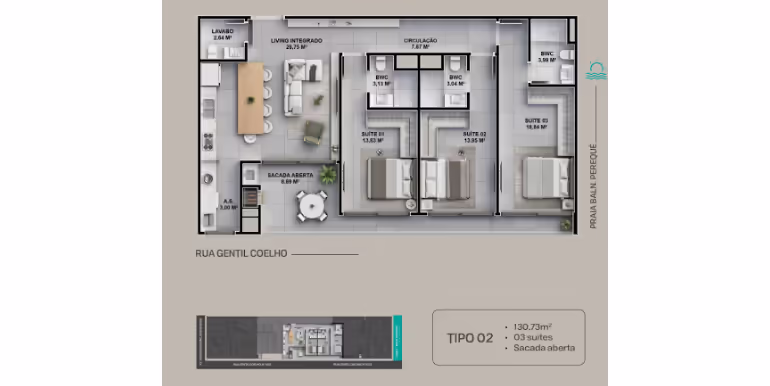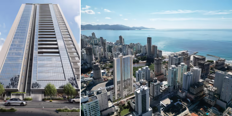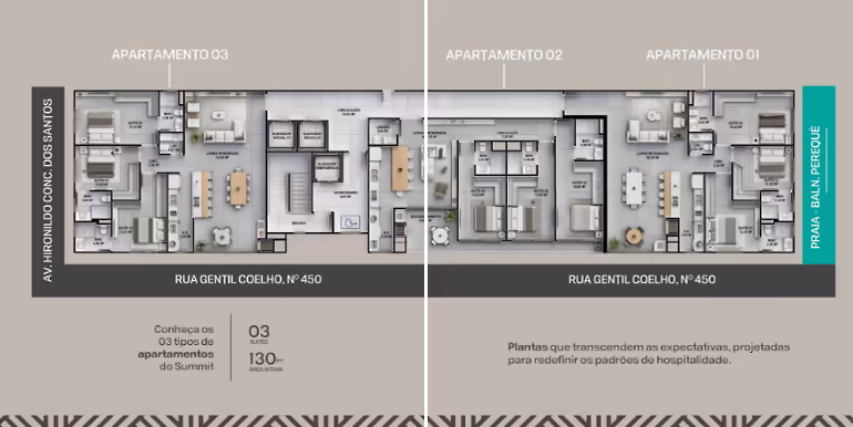 Apartamentos no Edifício Summit em Balneário Perequê, Porto Belo. Imóvel na planta, com 3 suítes, lavabo, espaço gourmet com churrasqueira a carvão, 2 vagas de garagem, área de lazer com mais de 1.000 m² e localizado a 450 metros da praia, próximo da Marina Pública e do Hard Rock Cafe.