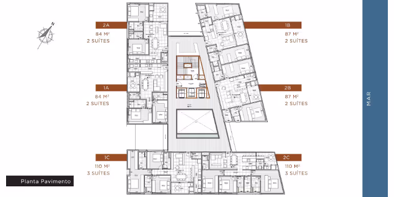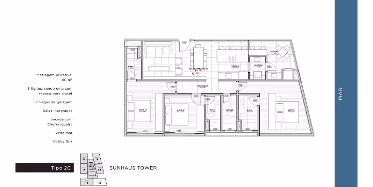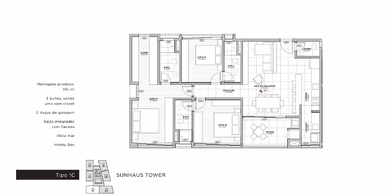 - Tipo C: 3 Suítes / 110 m²