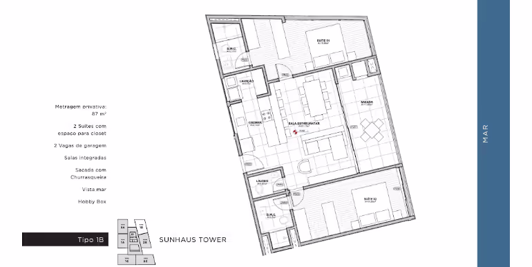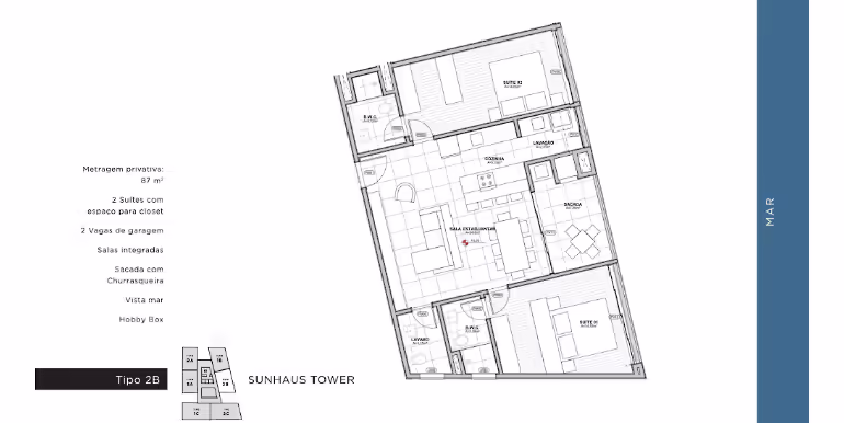- Tipo B: 2 Suítes / 87 m²
