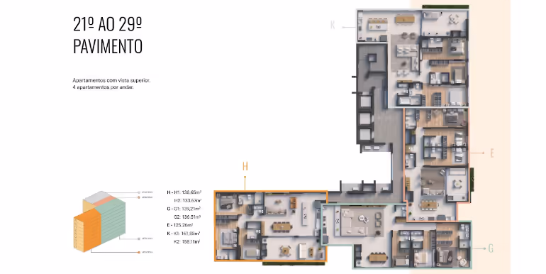 - Área Privativa de 94 a 296 m²