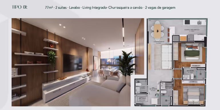 - Living com Cozinha Integrada e Churrasqueira a Carvão