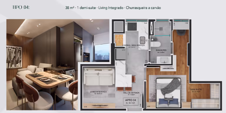 - Tipo 04: 1 Demi-Suíte / 38 m²