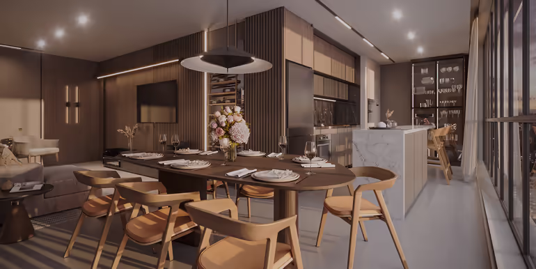 - Living com Cozinha Integrada e Churrasqueira a Carvão