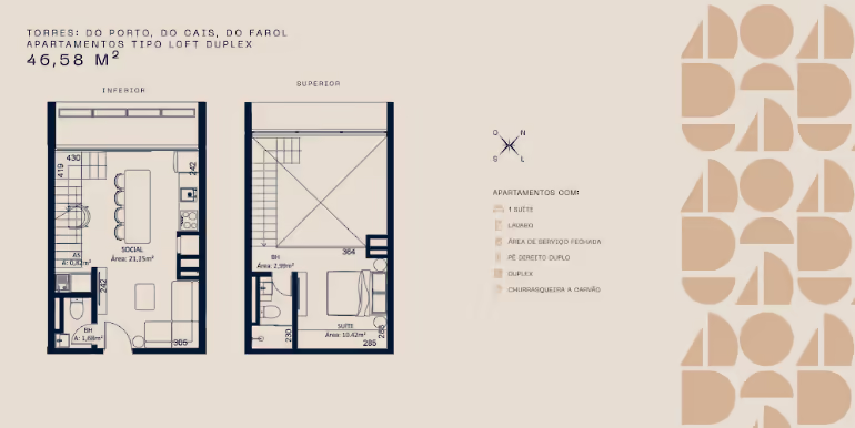 - Duplex com 1 Suíte / Duplex com 2 Suítes / Tipo com 2 Suítes