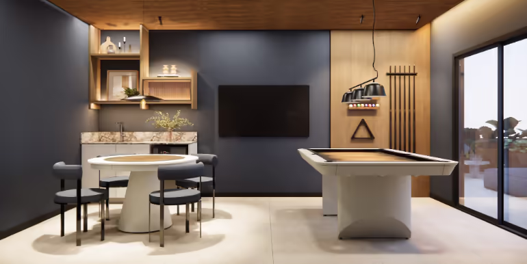 - Living com Cozinha Integrada e Churrasqueira a Carvão