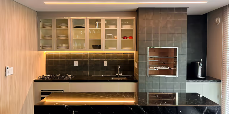 • Living Com Cozinha Integrada e Churrasqueira a Carvão