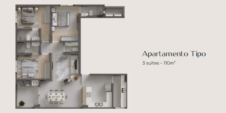 - Tipo com 3 Suítes com 110 m² Privativos