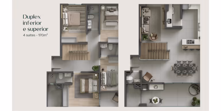 - Duplex com 4 Suítes com 170 m² Privativos