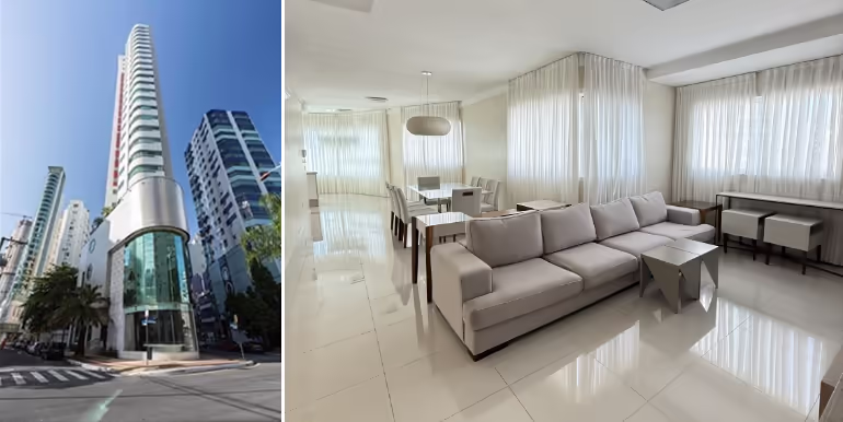 Apartamentos à venda no Edifício Celebrity Tower em Balneário Camboriú. Imóvel com 1 suíte + 2 demi-suítes, 2 vagas de garagem, boa área de lazer e excelente localização.