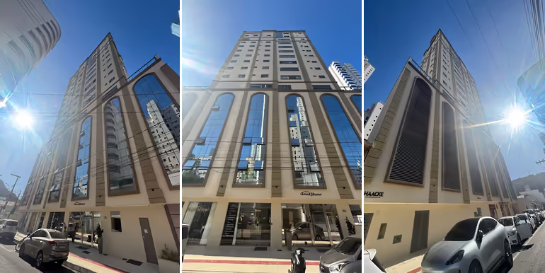Apartamentos à venda no Edifício Costa Amalfitana em Balneário Camboriú. Imóvel com 1 suíte + 2 demi-suítes, lavabo, 2 vagas de garagem e boa área de lazer, localizado na Rua 971 – Centro.