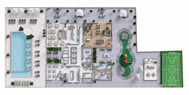 - Área de Lazer Enorme, em 2 Andares, Com Mais de 2.800 m²