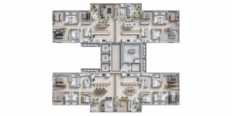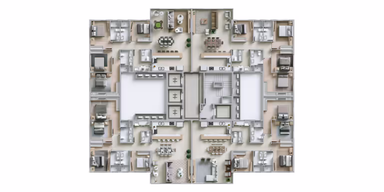 - Apartamentos Tipo 1 (2 Suítes + 2 Dormitórios)