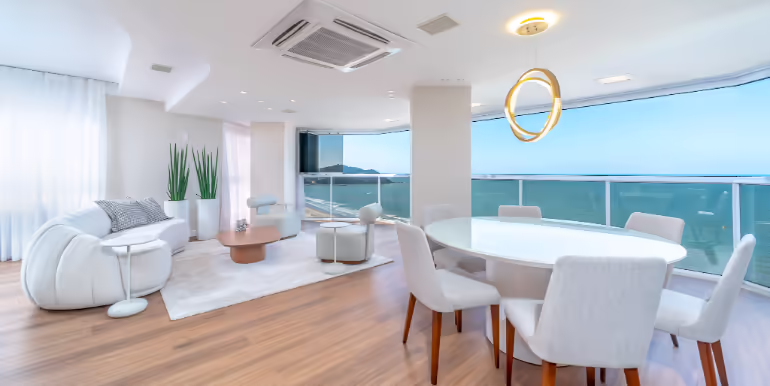Apartamento à venda no Edifício Maria Eduarda em Balneário Camboriú. Imóvel frente mar, mobiliado e decorado, com 4 suítes, 3 vagas de garagem e linda vista para o mar, próximo ao Atlântico Shopping.