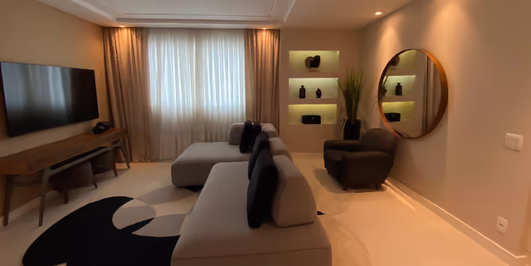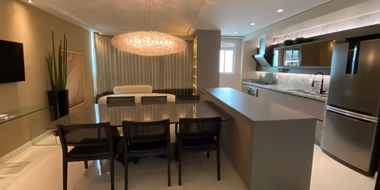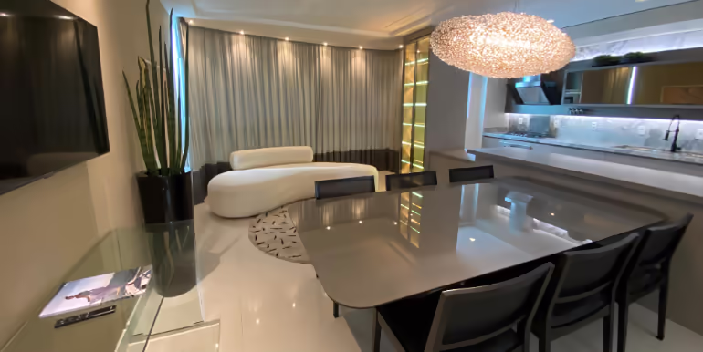 Apartamentos à venda no Edifício Torre Esmeralda em Balneário Camboriú. Imóvel amplo, mobiliado, com 3 suítes + home office, 3 vagas de garagem e área de lazer para toda família, localizado na Rua 1131 – Centro.