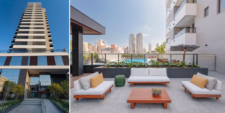 Apartamentos à venda no Edifício Essenza em Itajaí. Imóvel com 2 ou 3 dormitórios, sendo 1 suíte, sacada com churrasqueira a carvão, 2 ou 3 vagas de garagem e ótima área de lazer, localizado Centro, próximo do Supermercado Angeloni.