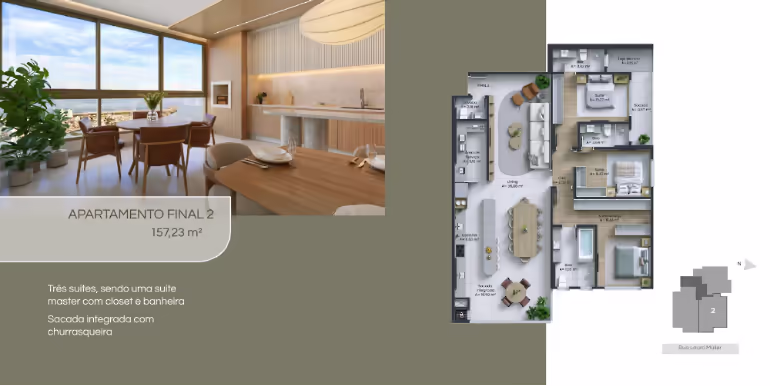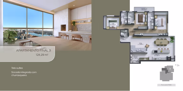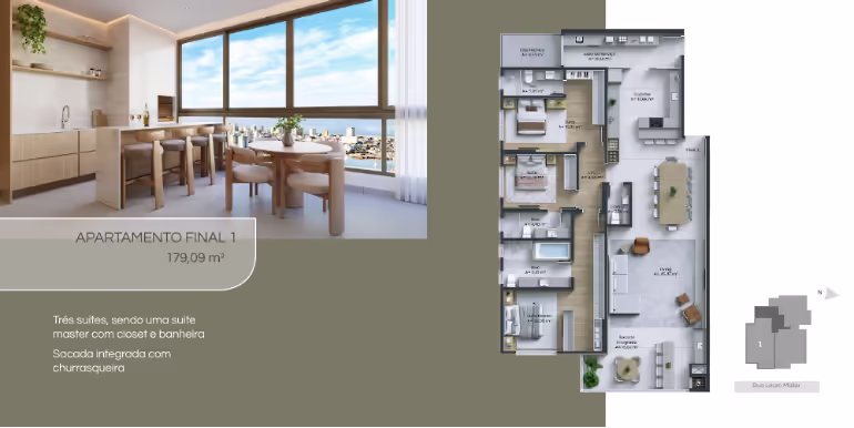Apartamentos à venda no Edifício Monserrato em Itajaí. Imóvel na planta, espaçoso, com 3 suítes, lavabo, espaço gourmet com churrasqueira a carvão, 2 ou 3 vagas de garagem e ampla área de lazer, localizado na Rua Lauro Muller – Centro.