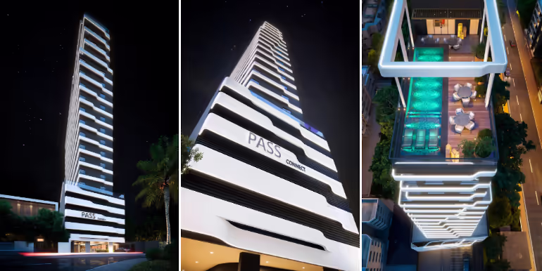 Apartamentos à venda no Edifício Pass Connect em Itajaí. Imóvel com studios, 1 dormitório ou 1 suíte, 1 vaga de garagem, ampla área de lazer, incluindo no rooftop e localizado no Centro, em frente ao Supermercado Angeloni e próxino à Univali – Centro.