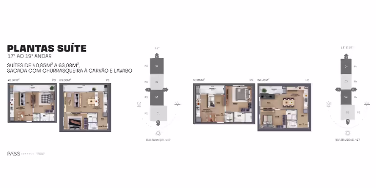 - 1 Suíte / Sacada com Churrasqueira a Carvão / Lavabo / 40 a 63 m²