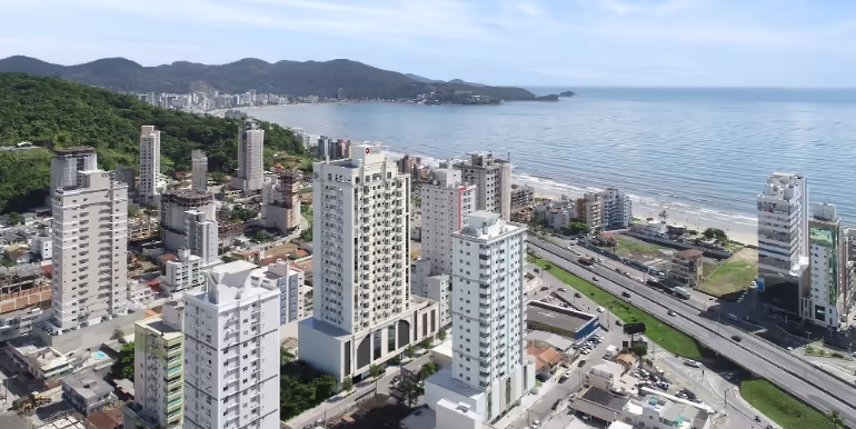 Apartamentos à venda no Edifício Alexandrita Residencial em Itapema. Imóvel na planta, com 2 suítes, sacada com churrasqueira a carvão, 1 vaga de garagem e área de lazer no rooftop, a apenas de 300 metros da praia.