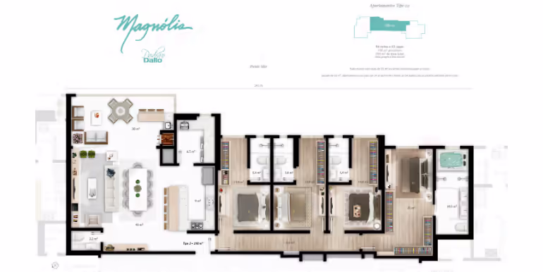 - Tipo 02: 4 Suítes / 3 Vagas / 190 m²