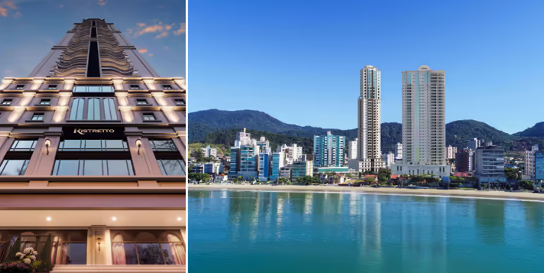 Apartamentos à venda no Edifício Ristretto no Centro – Itapema. Imóvel estilo Neoclássico, padrão Dallo, espaçoso, com 4 suítes, 3 ou 4 vagas de garagem e ótima área de lazer, localizado ao lado no Centro, a menos de 200 metros da praia.