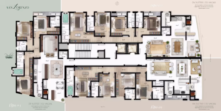 - Tipo 02: 4 Suítes / 3 Vagas / 165 m²