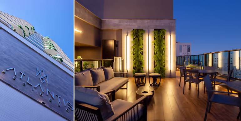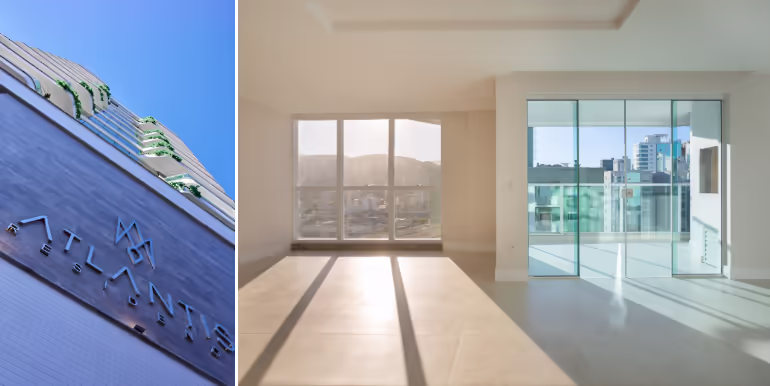 Apartamentos à venda no Edifício Atlantis em Meia Praia – Itapema. Imóvel com 3 suítes, lavabo, sacada com churrasqueira a carvão, 2 vagas de garagem e área de lazer no rooftop, localizado na Rua 216, a apenas 300 metros da praia.