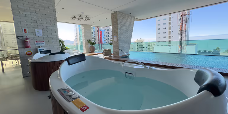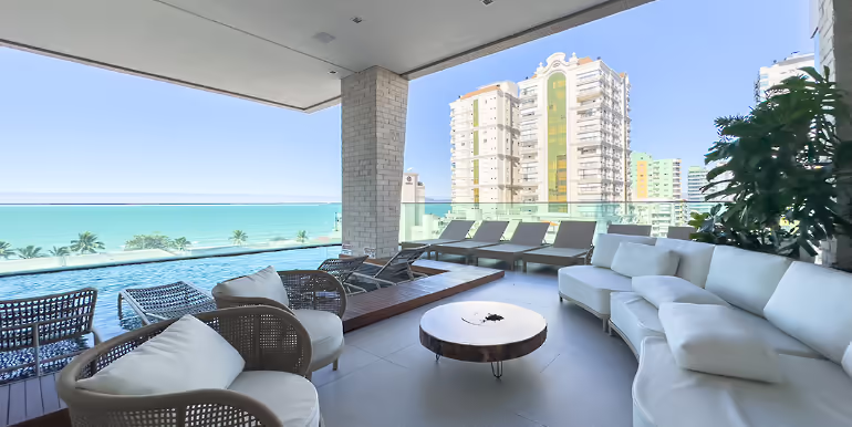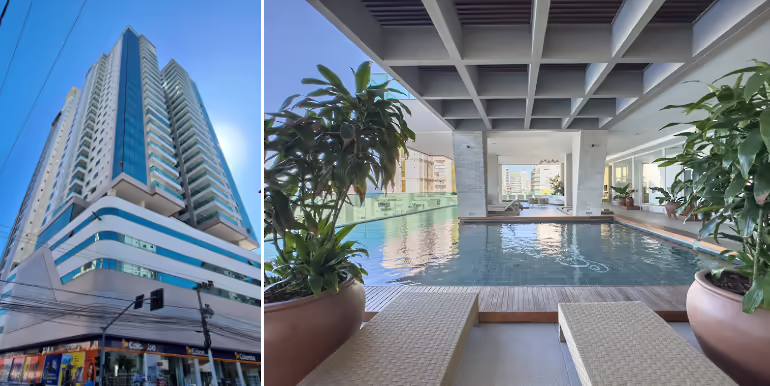 Apartamentos à venda no Edifício Garden Square em Meia Praia – Itapema. Imóvel espaçoso, com 3 ou 4 suítes, lavabo, amplo living, ampla sacada com churrasqueira a carvão, 3 ou 4 vagas de garagem e ampla área de lazer, localizado na Av. Nereu Ramos, Esquina com as Ruas 202 e 204, a menos de 150 metros da praia.