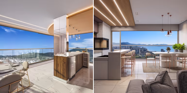 Apartamentos à venda no Edifício Baía Rica em Balneário Perequê, Porto Belo. Imóvel na planta, com 3 suítes, lavabo, living integrado com churrasqueira a carvão, 2 vagas de garagem e área de lazer home club com mais de 1.200 m², incluindo no rooftop, localizado numas das principais avenidas da cidade, a 650 metros da praia.