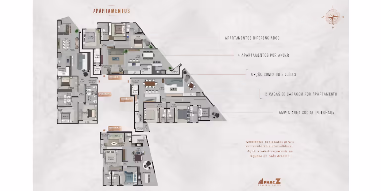 - Tipo 01: 3 Suítes / 126 m²