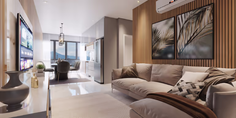 - Living com Cozinha Integrada e Churrasqueira a Carvão