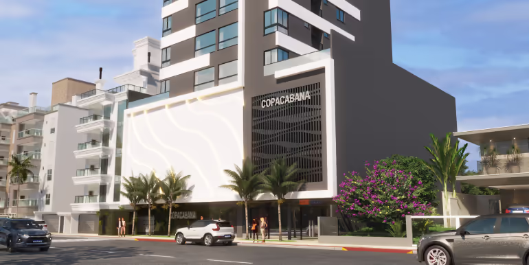 Apartamentos à venda no Edifício Copacabana em Balneário Perequê, Porto Belo. Imóvel na planta, com 2 ou 3 suítes, lavabo, living integrado com churrasqueira a carvão, 2 vagas de garagem e boa área de lazer, localizado próximo do Parque da Lagoa do Perequê, a 400 metros da praia.