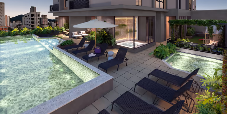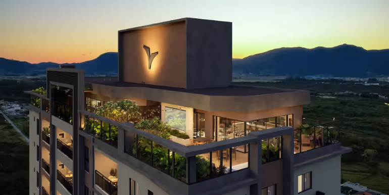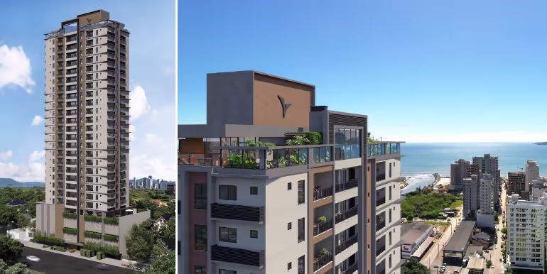 Apartamentos à venda no Edifício Due Fiori em Balneário Perequê, Porto Belo. Imóvel com 2 ou 3 suítes, 1 ou 2 vagas de garagem, área de lazer com 1.000 m², incluindo no rooftop e localizado a 650 metros da praia.
