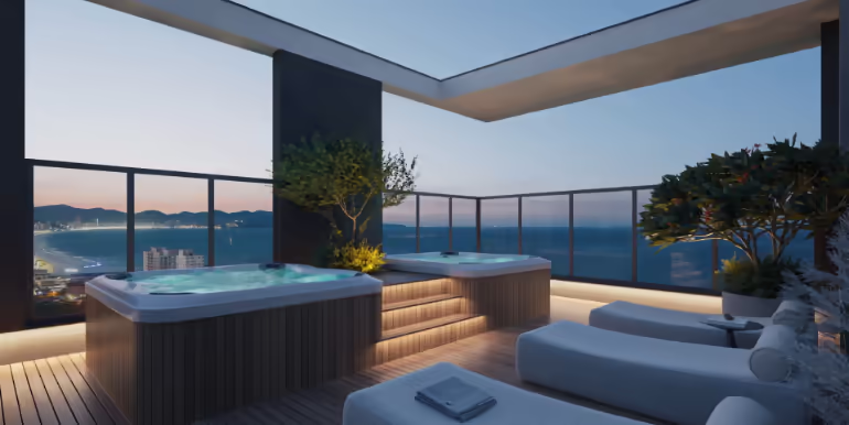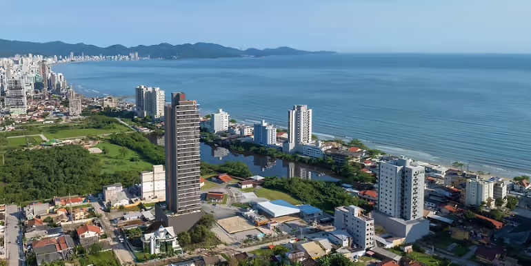 Apartamentos à venda no Edifício Gran Paradiso em Balneário Perequê, Porto Belo. Imóvel de frente para o Parque da Lagoa do Perequê, com vista definitiva, 3 suítes ou 2 suítes + 2 demi-suítes, 2 vagas de garagem e lazer home club com mais de 1.200 m², incluindo no rooftop, localizado a menos de 300 metros da praia.