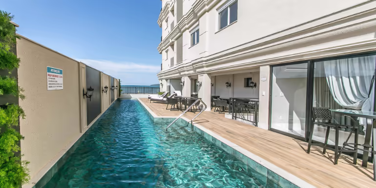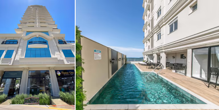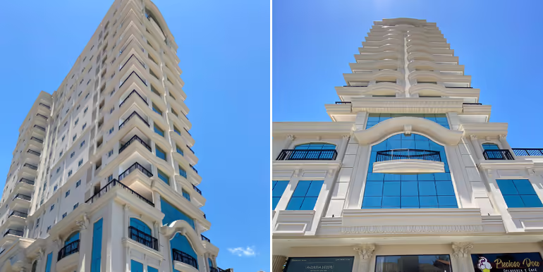Apartamentos à venda no Edifício Grand Palais em Balneário Perequê, Porto Belo. Imóvel frente mar, estilo neoclássico, com linda vista, 3 ou 4 suítes, lavabo, sacada com churrasqueira a carvão, 2 ou 3 vagas de garagem e boa área de lazer, localizado na Av. Senador Atílio Fontana.
