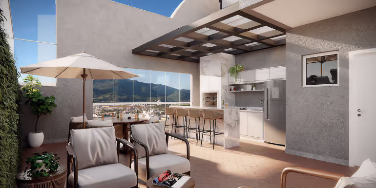 - Living com Cozinha Integrada e Churrasqueira a Carvão