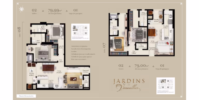 Apartamentos à venda no Edifício Jardins de Versalhes em Porto Belo. Imóvel na planta, estilo neoclássico, com 2 suítes, lavabo, sacada com churrasqueira a carvão e lazer home club com mais de 1.400 m², localizado ao lado do Supermercado Fort.