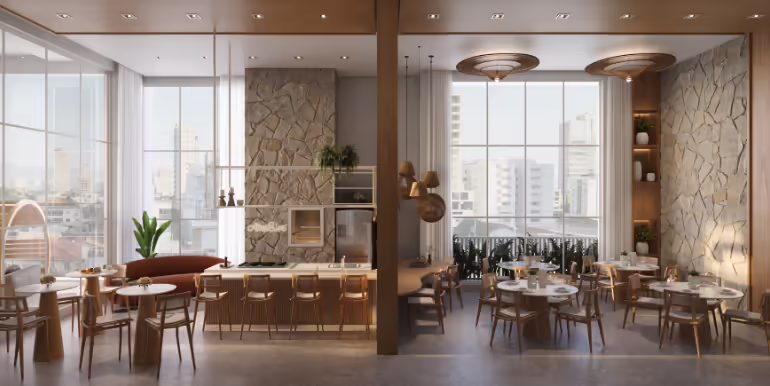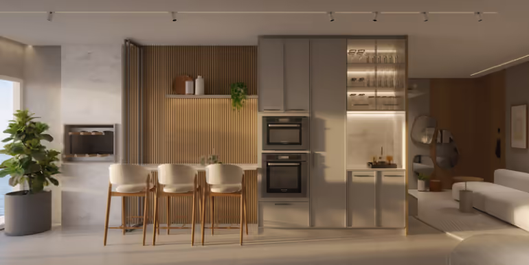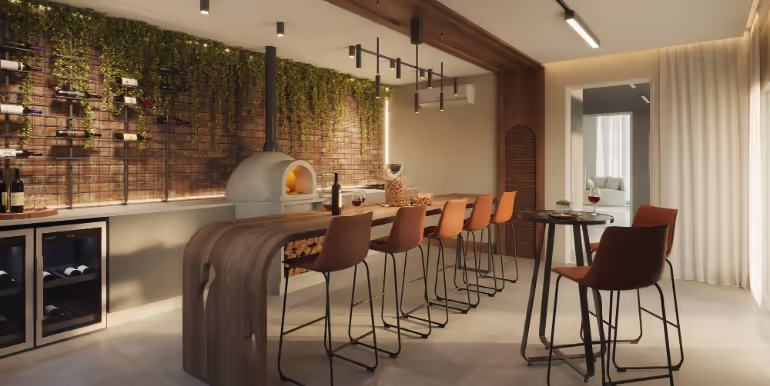 - Living com Cozinha Integrada e Churrasqueira a Carvão