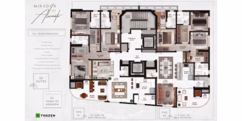 - Área Privativa de 117 a 125 m²